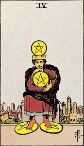 Das ist meine Meinung. Und bevor ich dir noch weiter quatsche, nehmen wir mal einfach eine Karte als Beispiel hier: Die Vier der Münzen.